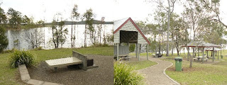 It had shaded picnic seats, gas powered barbecues and playgrounds for the kids. With the recent rains, the grass was green and there were trees in the lake and it was looking gorgeous. There are at least eight to ten separate areas all spread out around the park and down to the edge of the lake, and facilities enough for a small town to have a picnic there. Today there were three men doing some kind of fight training on a mat, and a child on one of the slides. It must get busier on weekends. It is a fantastic resource.